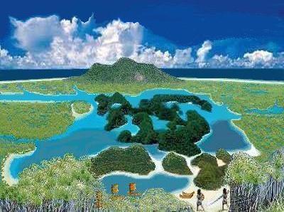 The remaining hominids on the Island built themselves a new life in their disrupted Eden while their cousins battled for survival in the wider world. By this time their skulls were losing their inherited robustness. Strong jaws anchored to large brow ridges were no longer required for a diet of soft fish and shellfish and so their jaws and brow ridges had became smaller. It is also possible that overcrowding on the islands caused neoteny in which more infantile characteristics were selected to increase survival. With each interglacial, the ocean around the Islands rose and during the larger inundations, some of the Islanders were again washed off their low lying islands on their reed boats. |