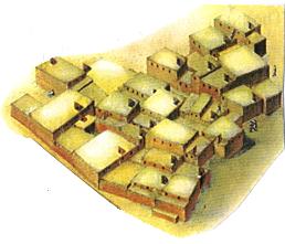 Catal Huyuk in southern Turkey, is an important archaeological site, where various crafts were collected that may have been developed separately over thousands of years previously. Pre-dating the first civilization by some three thousand years, it was the first industrial town where metals, fabrics and many other luxury goods were manufactured for overseas trade. The town could have housed several thousand slaves, fed from surrounding farms. They appear to have been securely quartered in cells without doors or windows built of mud-brick, with openings in the roofs that could have been secured as necessary with escape only by ladders against the walls. |